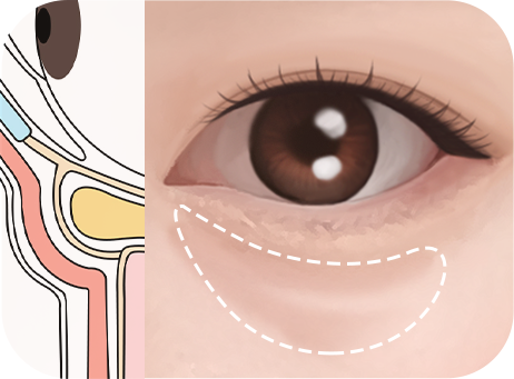 目の下の出っ張った脂肪の範囲と 形を診断しデザイン