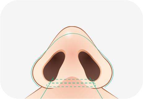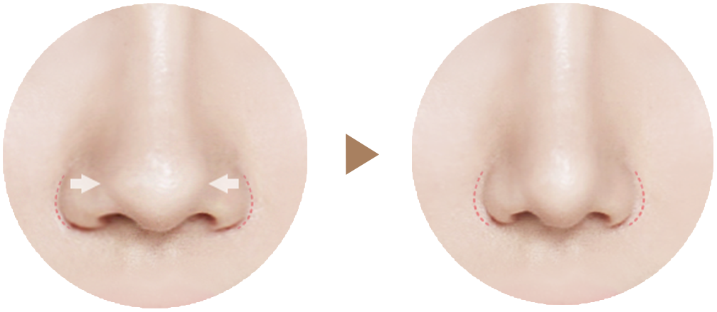 一般小鼻縮小とは違い、小鼻と頬の境界部の皮膚を切除せず、切開なしで鼻の内側を通して特殊糸で括り簡単で早く小鼻を小さくし、鼻先が高く見える効果がある手術です。